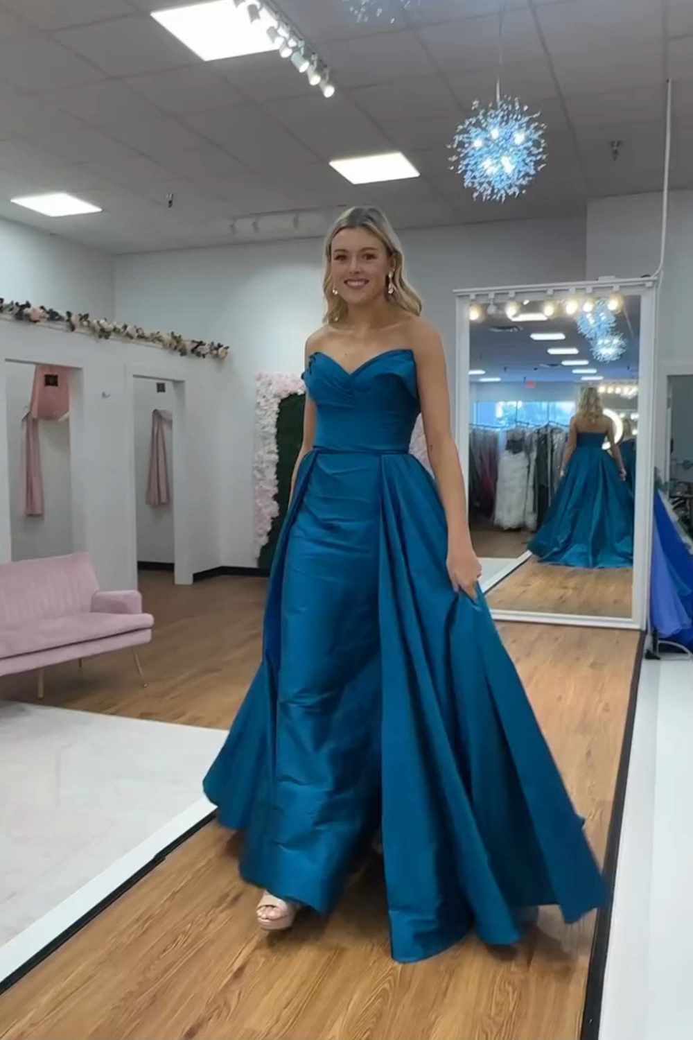 Blue Strapless Mermaid Long Satin Prom Dress with Cape