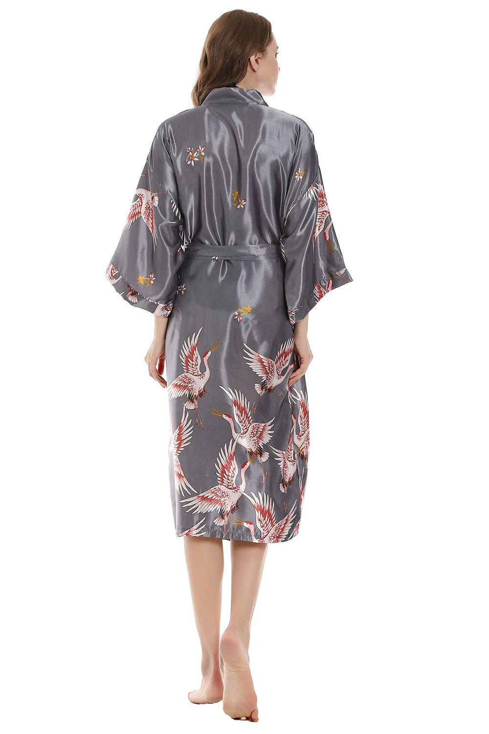 Grey Printed Kimono Bridal Party Robes