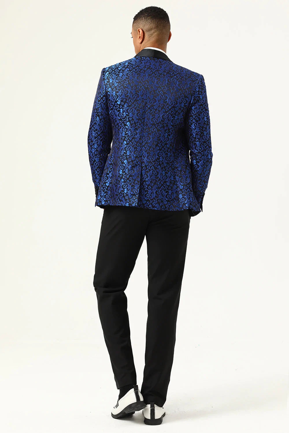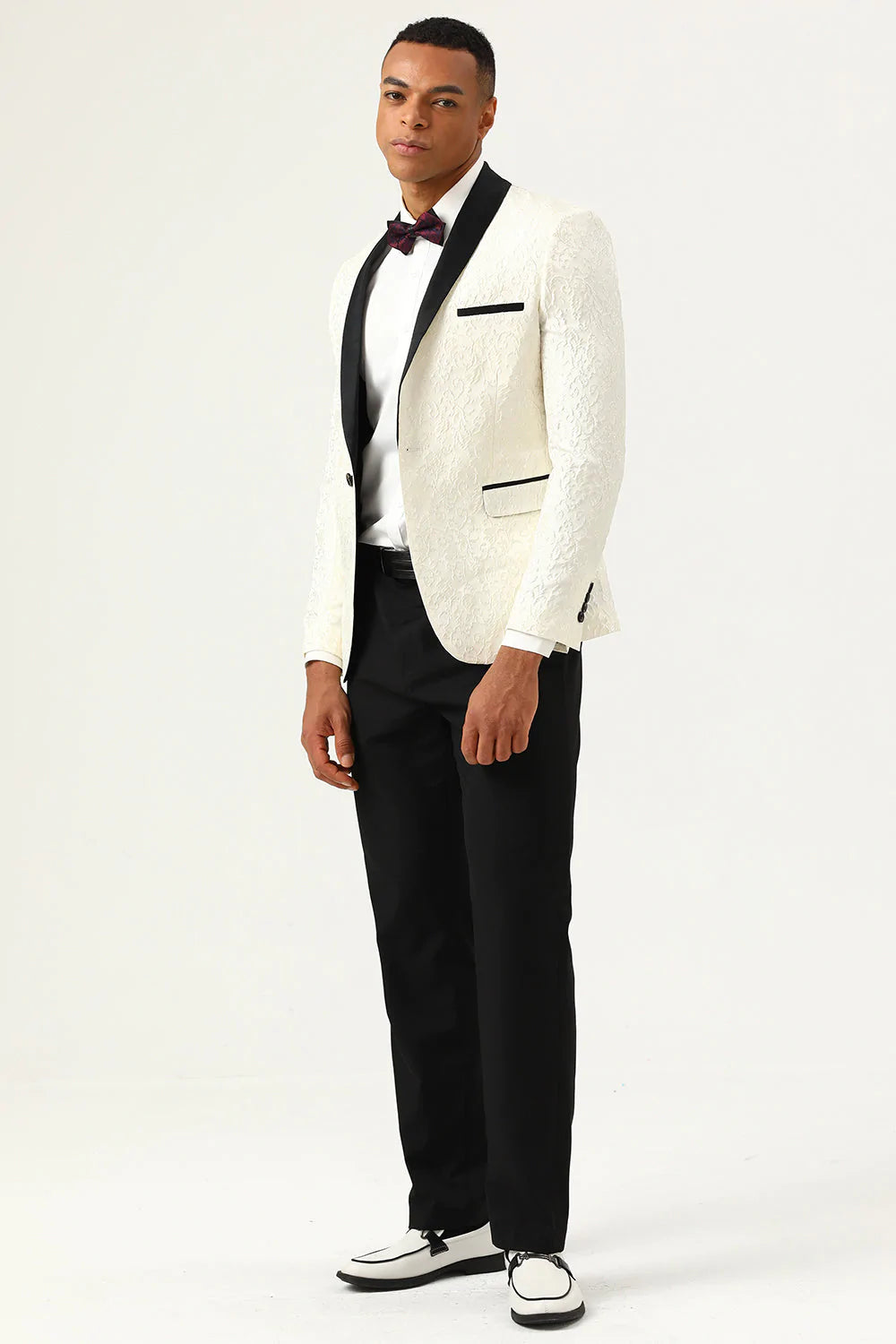 One Button White Shawl Lapel Jacquard Men's Prom Blazer