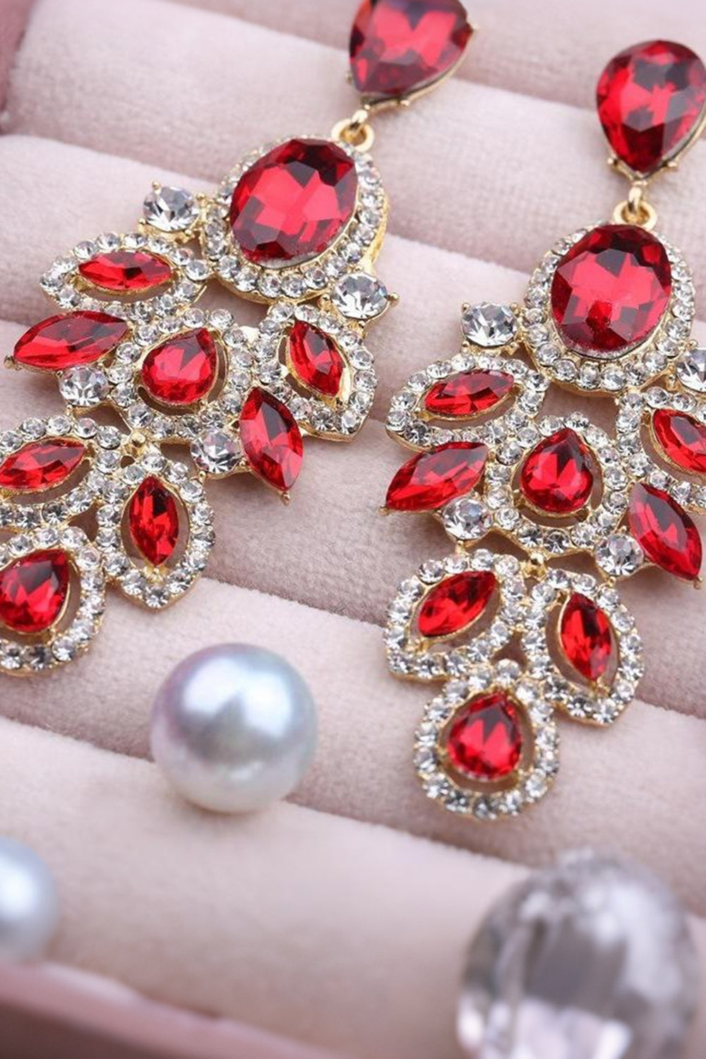 Sparkly Dark Green Leaf Shaped Prom Drop Earrings with Rhinestones