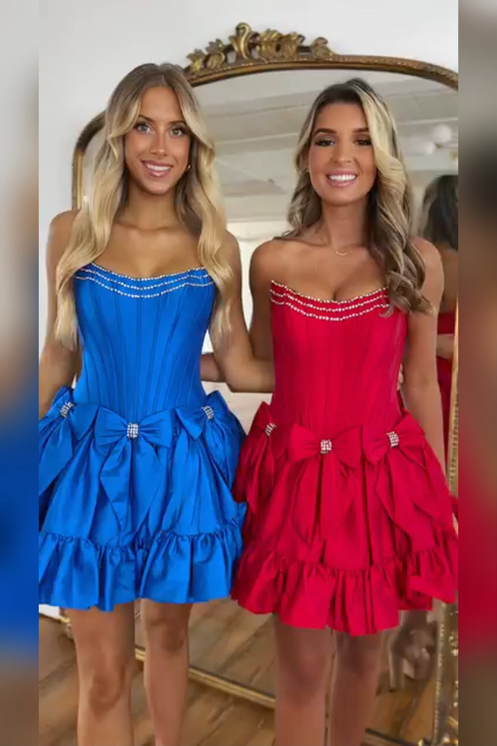 Fuchsia Strapless A-Line Satin Short Homecoming Dress with Bow